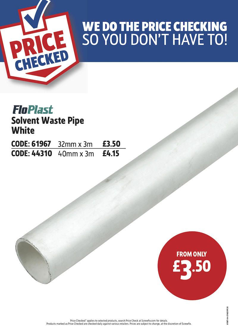 SOLVENT WELD WASTE PIPE 32MM X 3M WHITE EACH