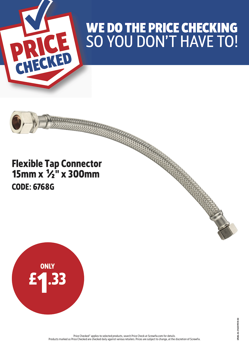 FLEXIBLE TAP CONNECTOR 15MM X 1/2IN X300MM