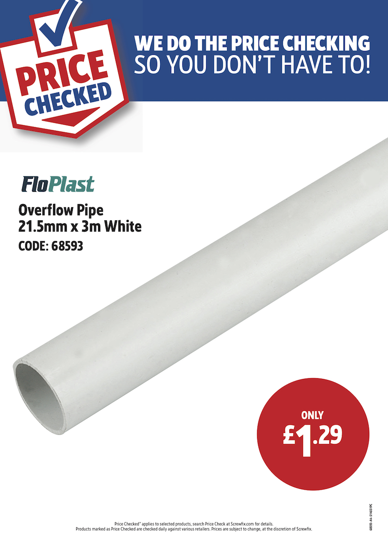 OVERFLOW PIPE 21 5MM X 3M WHITE EACH